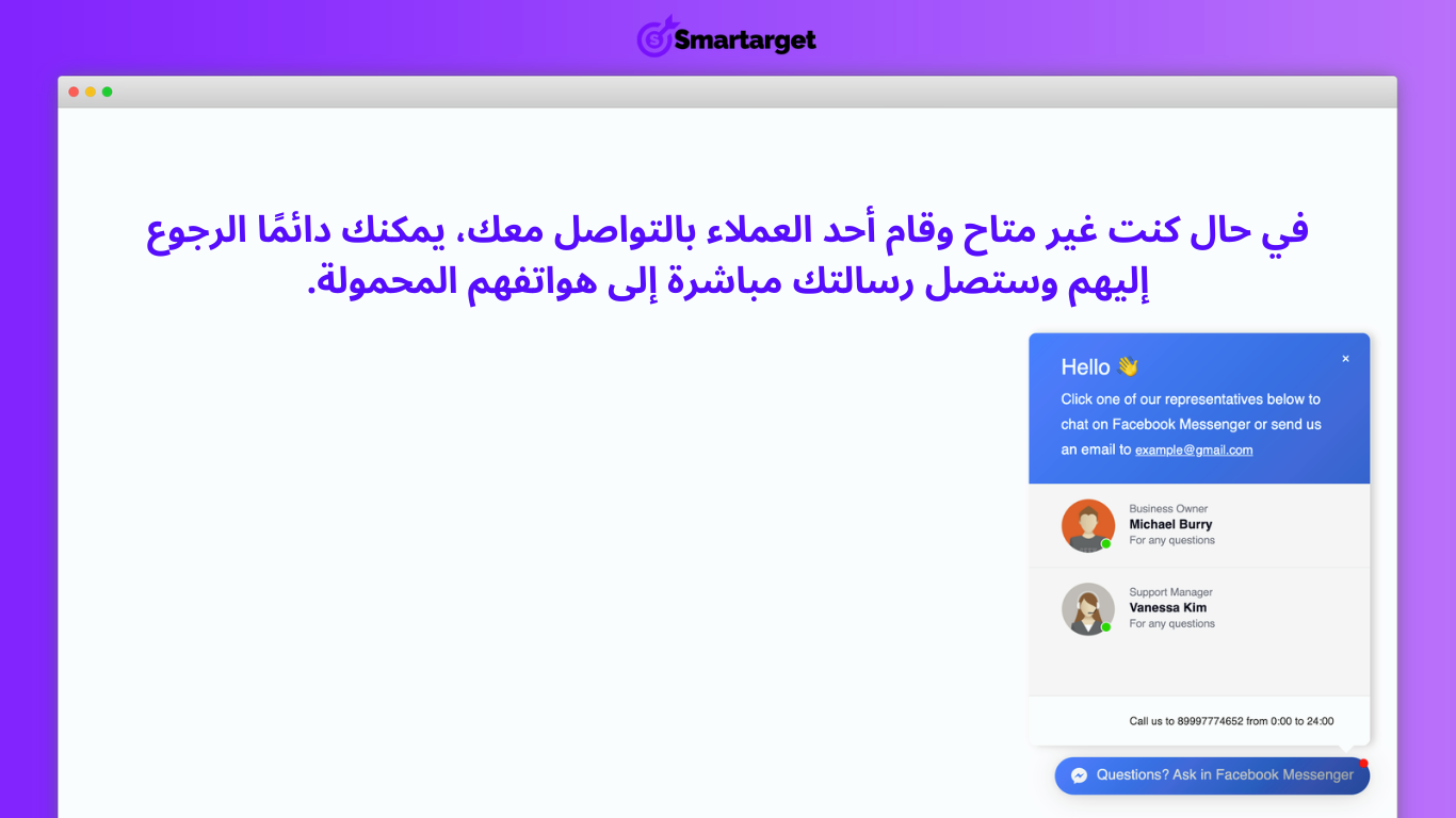 • استقبال استفسارات العملاء وإمكانية التعامل معها من خلال ماسنجر في أي وقت