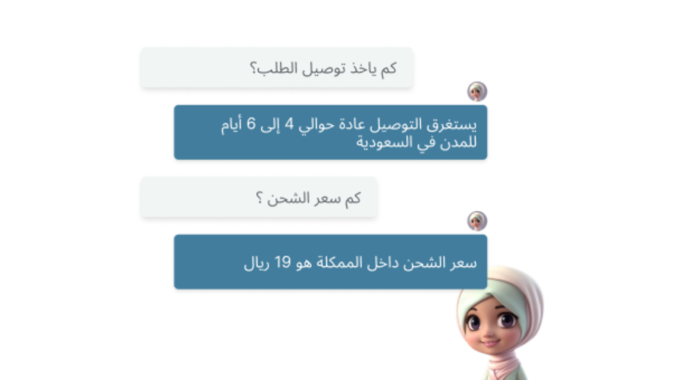 - إمكانية تتبع حالة الطلبات والبحث في سياسات المتجر أو معلومات الشحن والاستبدال