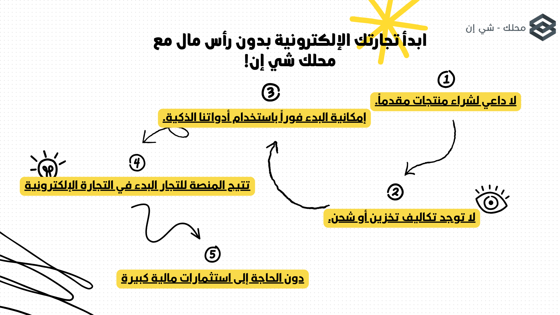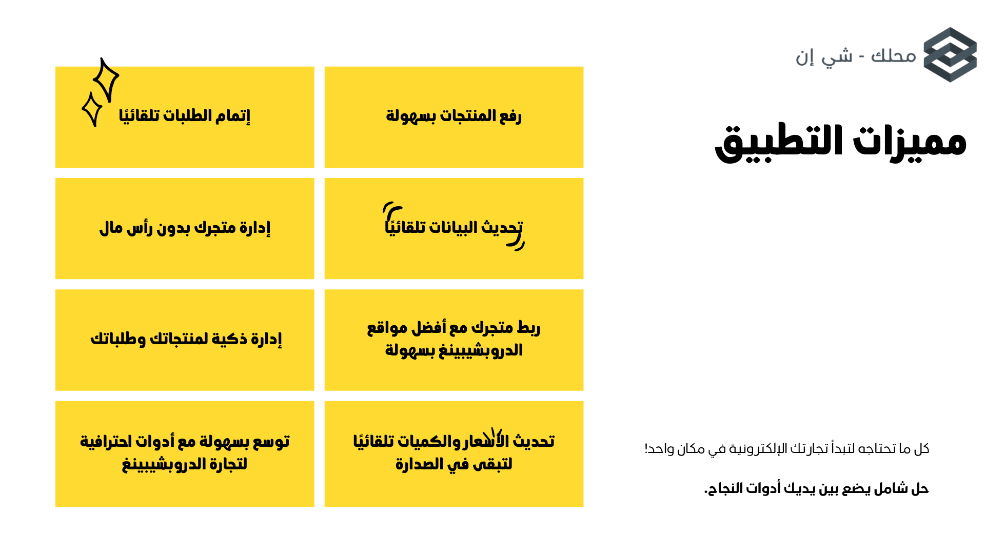 - لا حاجة لرأس مال ضخم، إذ يمكّن التطبيق أي تاجر من البدء دون تحمل تكاليف تخزين أو توزيع
