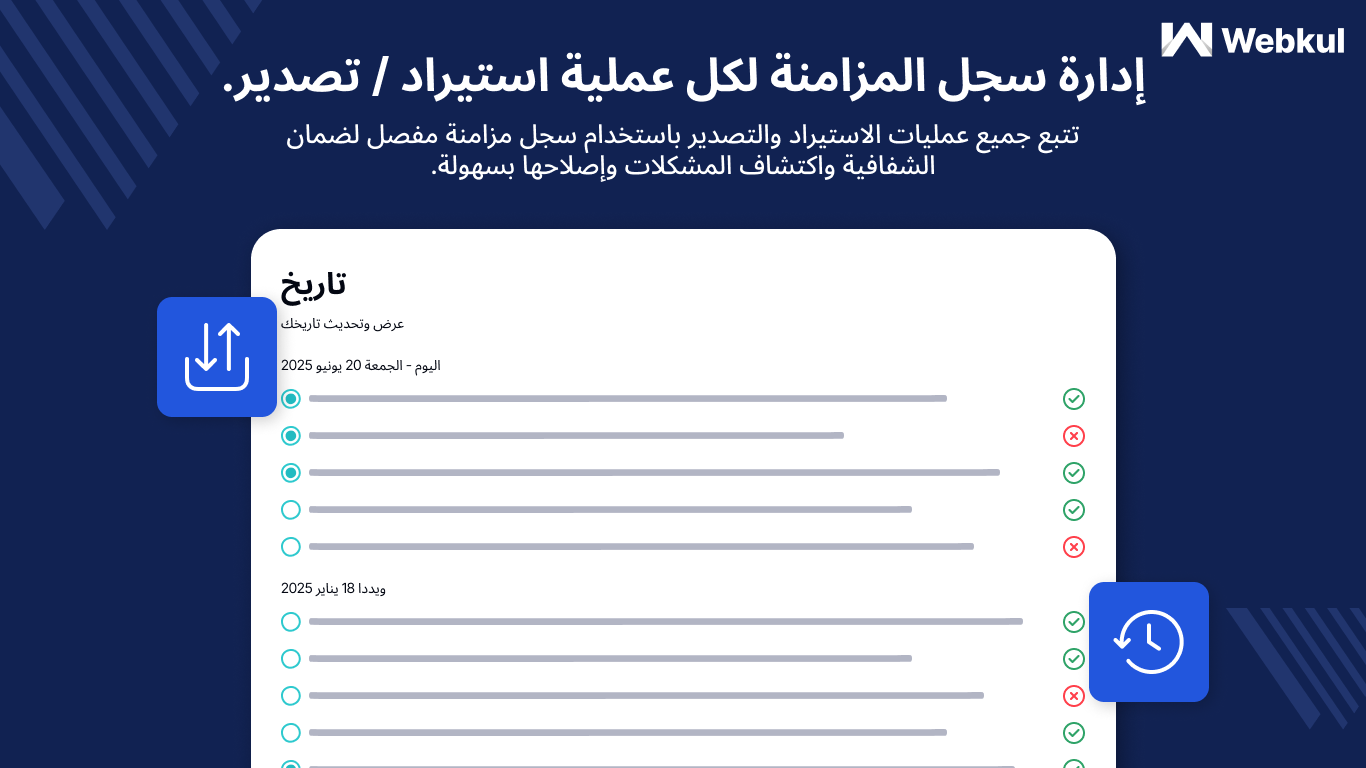 • تتبع شفاف لحالة الربط وسجلات مفصلة لكل عمليات المزامنة السابقة