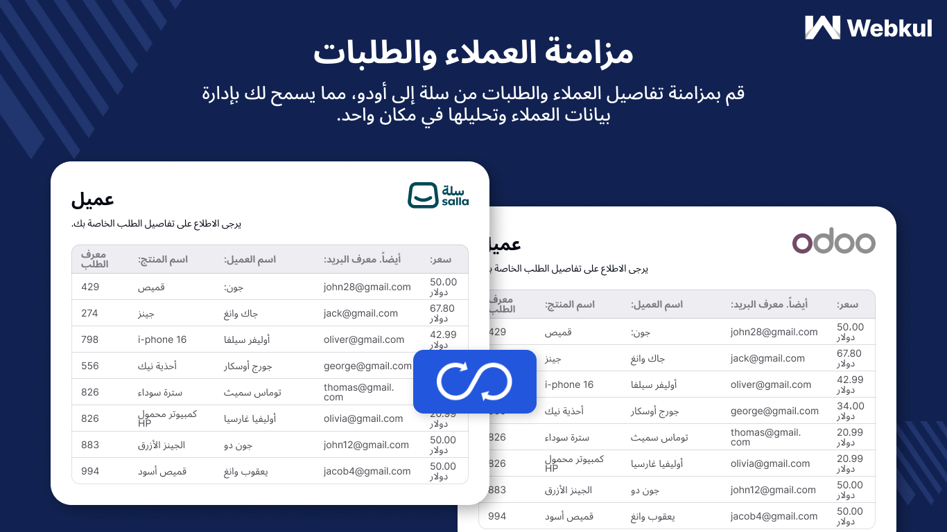 إذا كان هدفك زيادة كفاءة الأعمال وتوحيد البيانات دون أعباء إدارية يدوية وتعزيز دقة السجلات المحاسبية والمخزنية في الوقت نفسه، فإن موصل Odoo من Webkul يقدم الأدوات الملائمة لتحقيق ذلك بفاعلية ضمن منصة سلة.