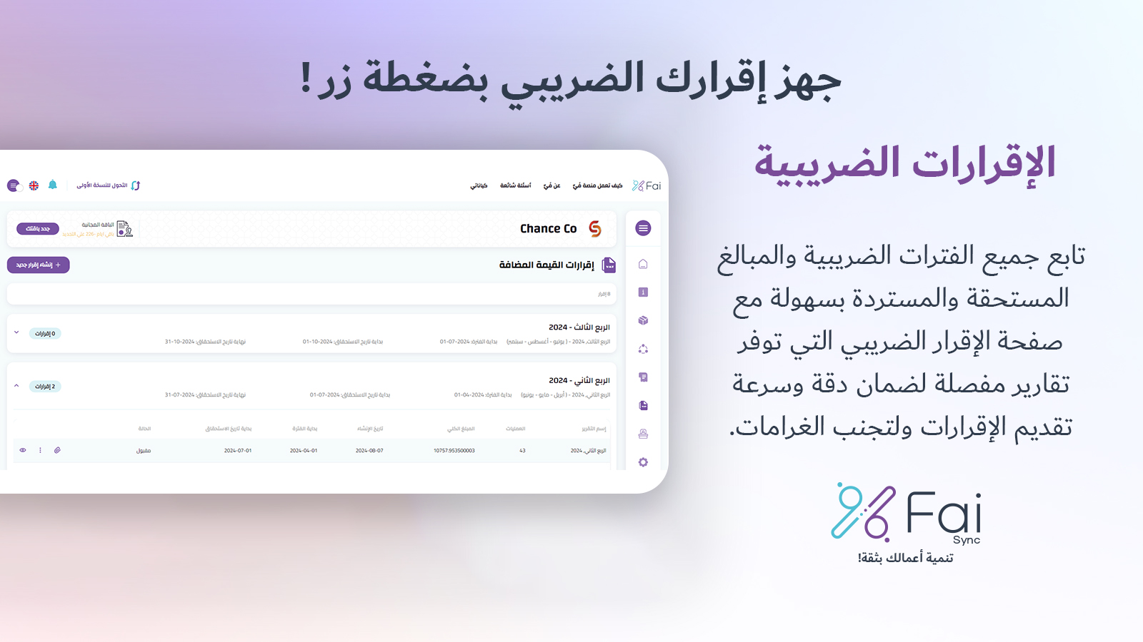 - إعداد وإرسال الإقرارات الضريبية بشكل تلقائي مع تذكيرات للمواعيد المهمة