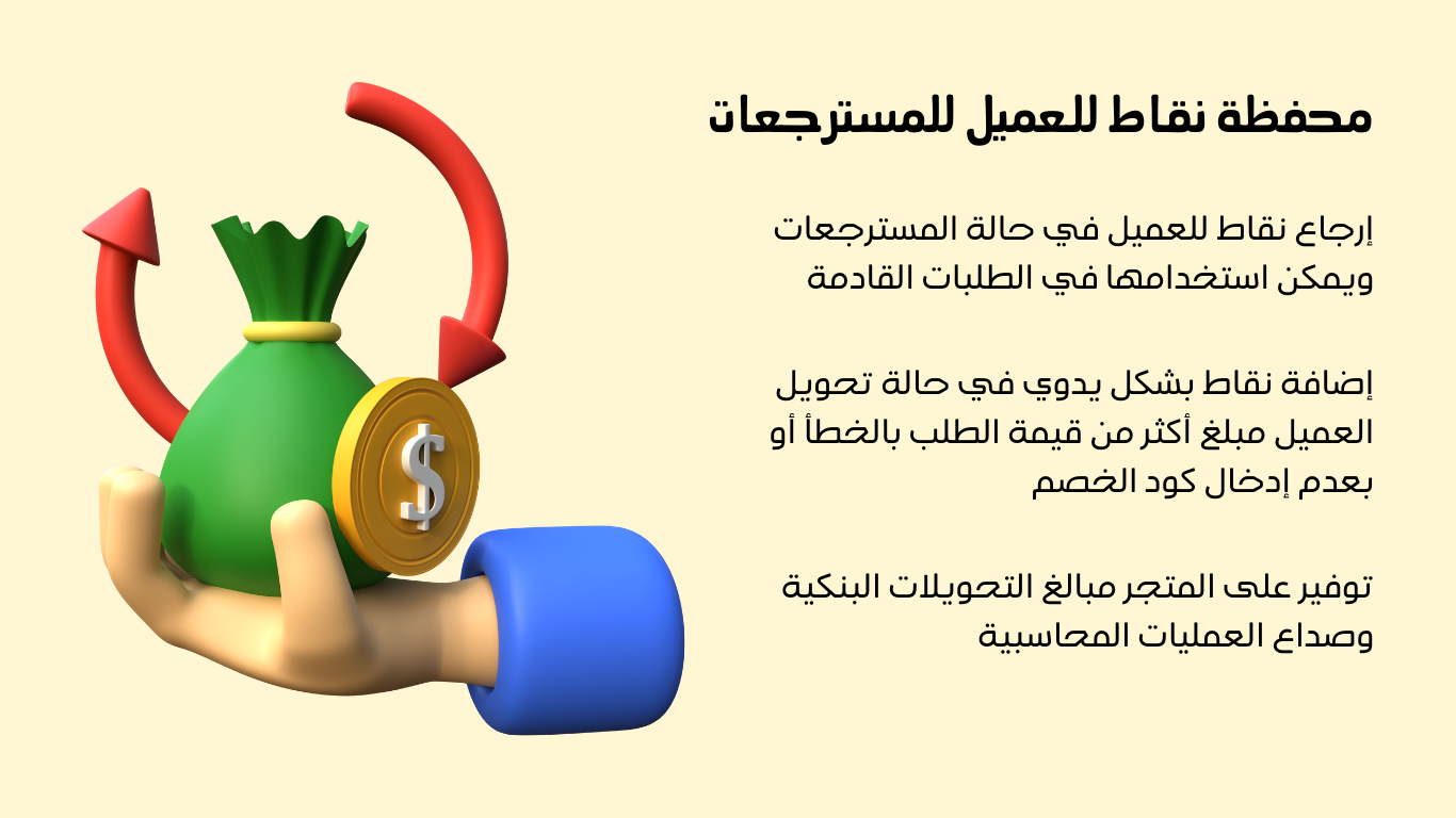- إمكانية استرداد النقاط عند إرجاع المنتجات، بما يسمح باستخدامها بمرونة بالغة مستقبلاً