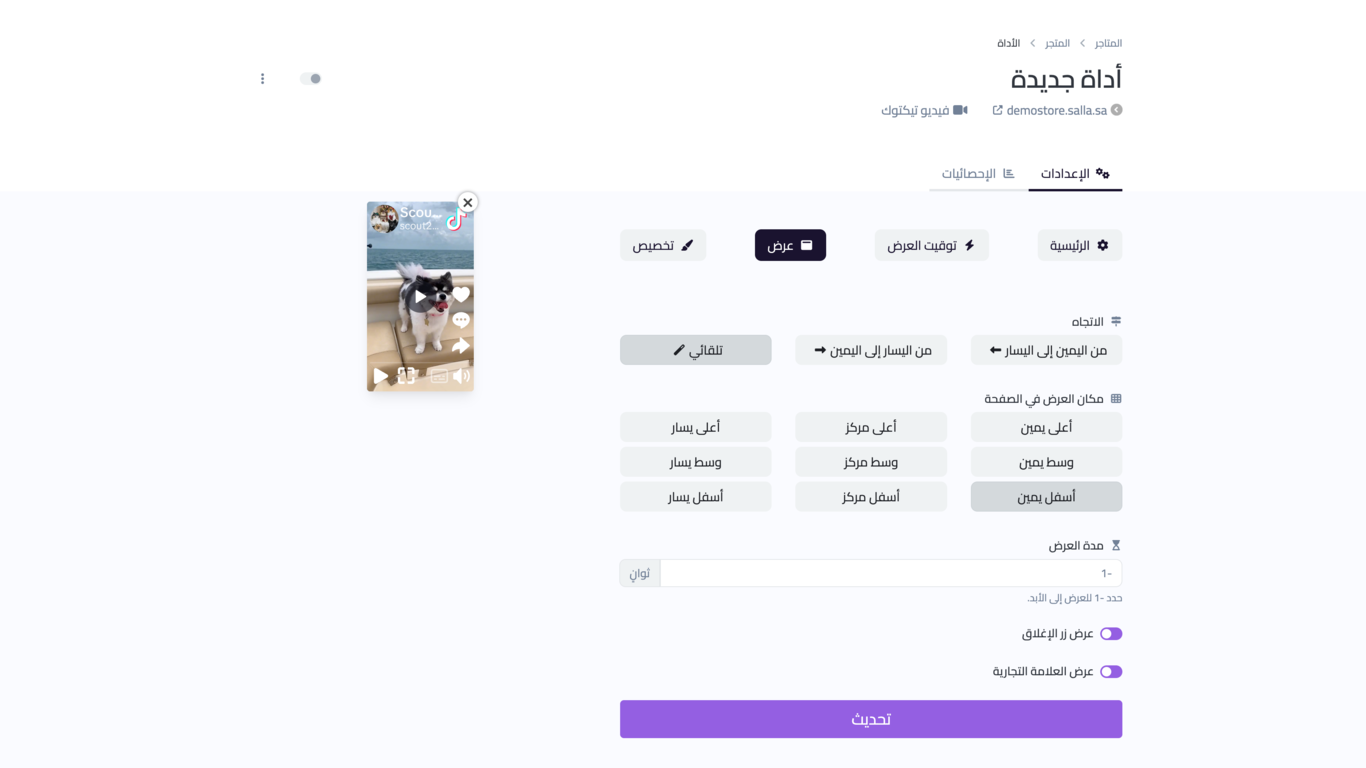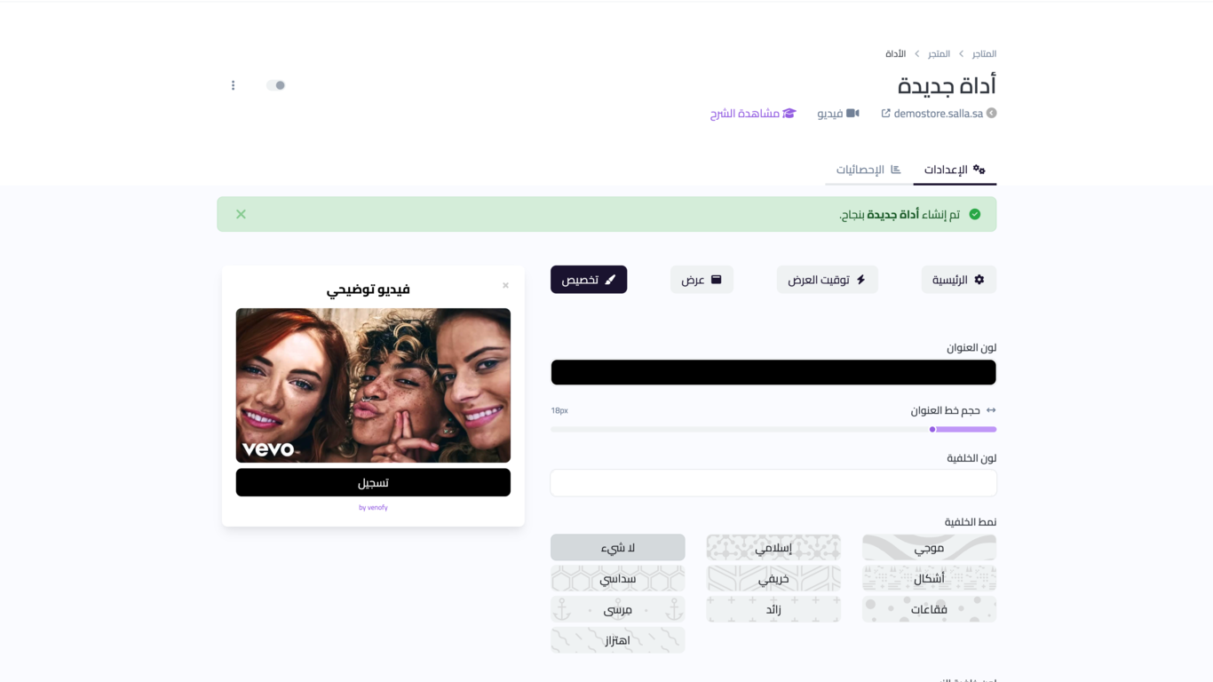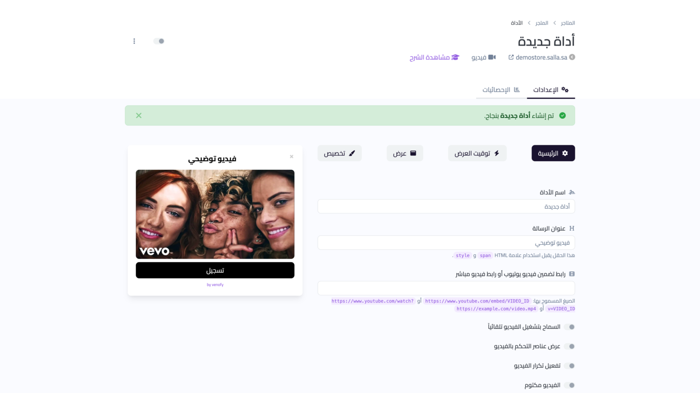- تعديل تصميم وشكل نافذة الفيديو لتتناسب مع هوية متجرك