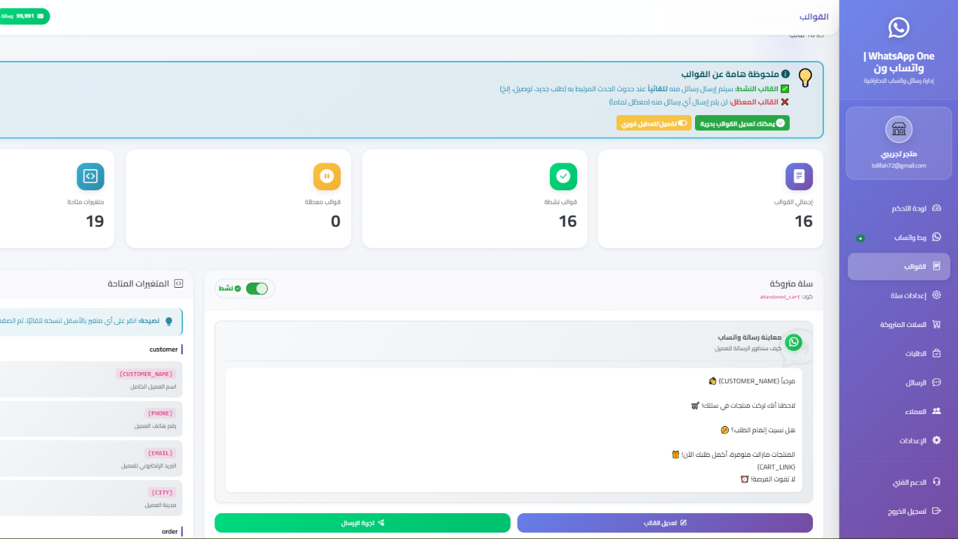 - دعم 19 متغيرًا لإضافة بيانات ديناميكية مثل اسم العميل ورقم الطلب ورابط المنتج