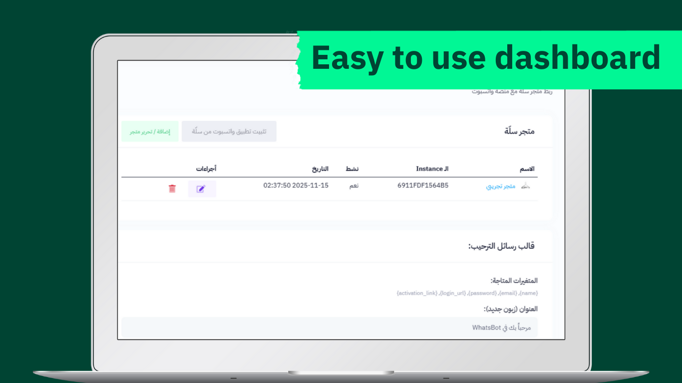 - إضافة متجرك في منصة واتسبوت تلقائيًا فور التفعيل على سلة