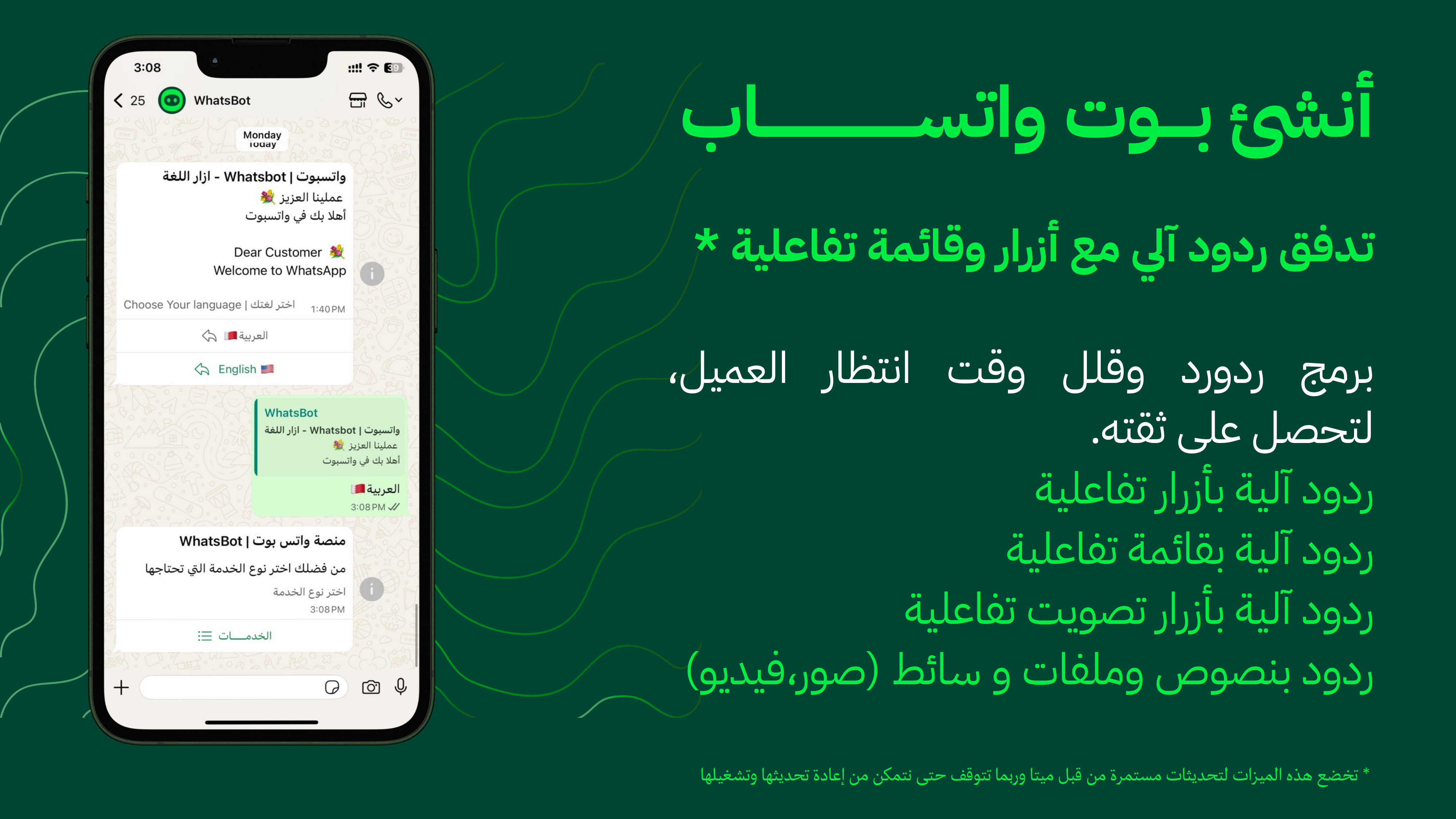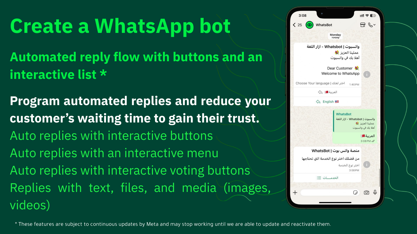 - دعم الأزرار التفاعلية في الرسائل مثل الروابط وأزرار الاتصال