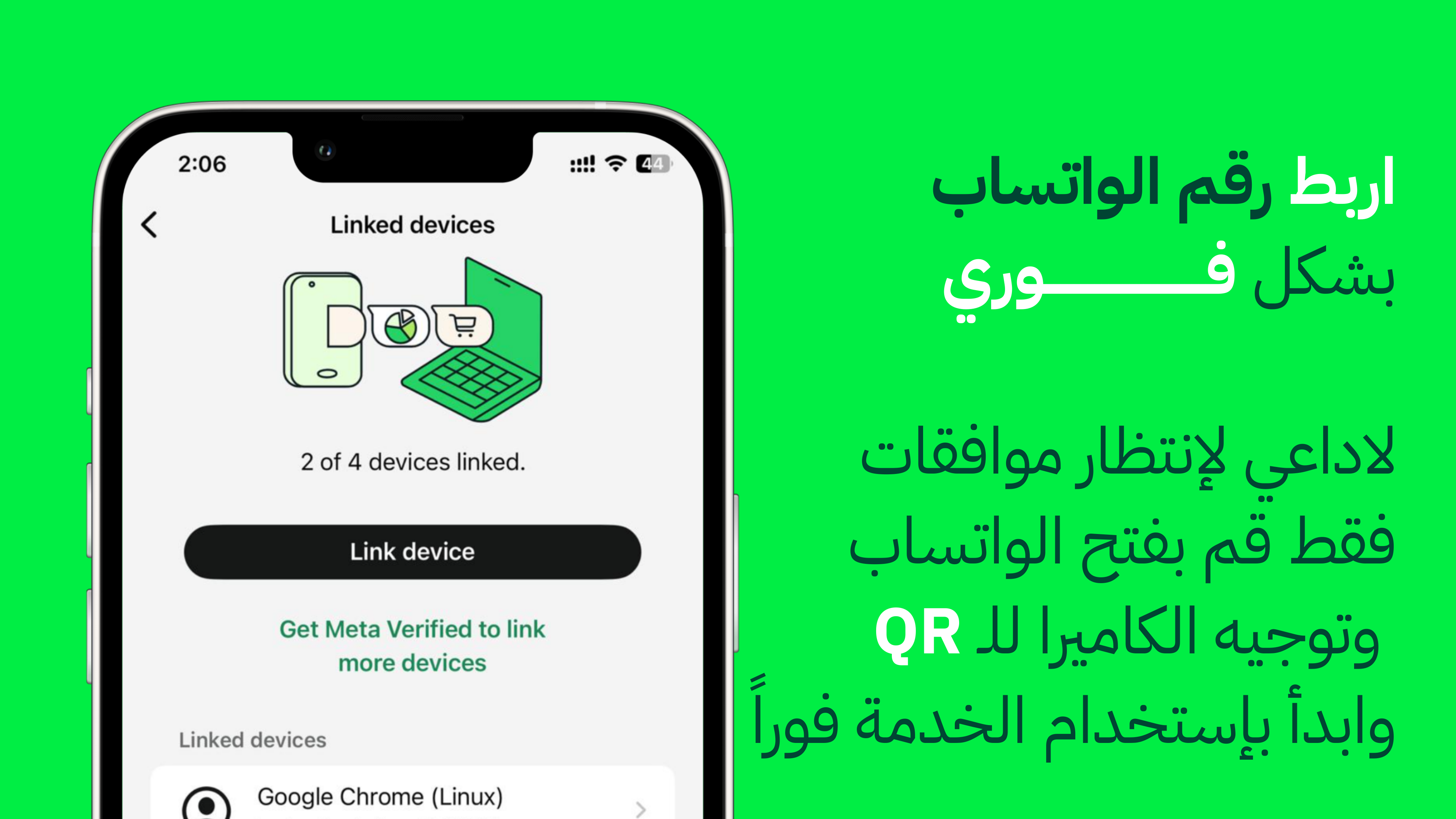 - ربط مباشر لنظام الرسائل مع حساب واتساب باستخدام رمز QR بدون تعقيد تقني