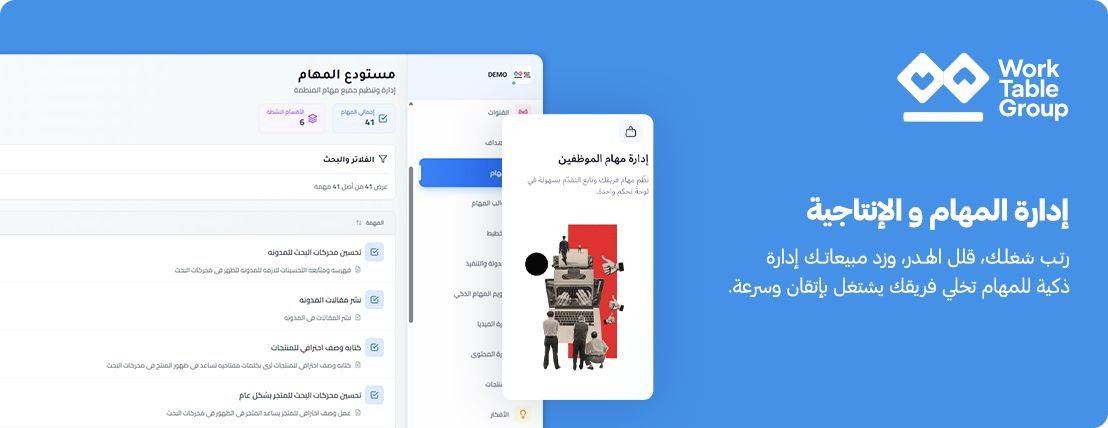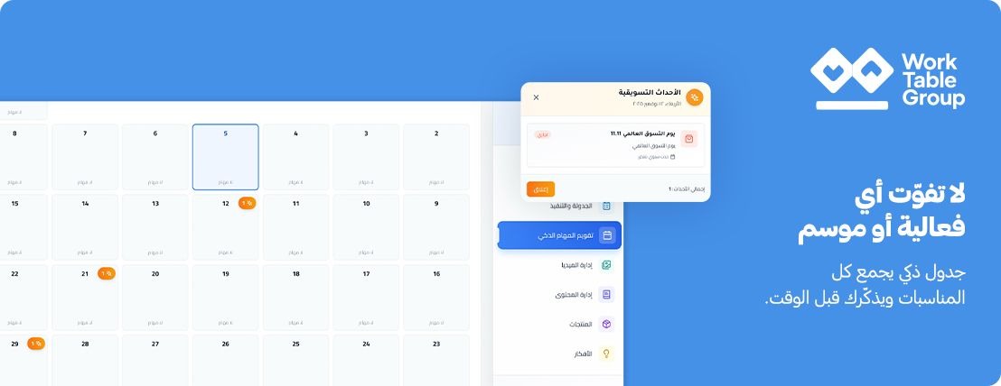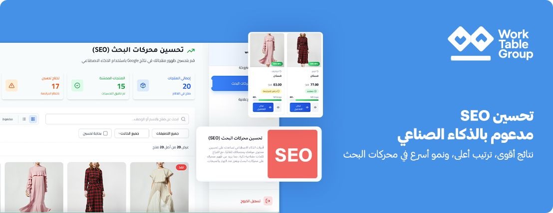 تطبيق ورك تيبل هو منصة متكاملة لإدارة الأعمال والتسويق الإلكتروني صممت خصيصًا لتلبية احتياجات أصحاب المتاجر الإلكترونية على منصة سلة. يُمكن من خلال ورك تيبل متابعة سير العمل وتنسيق العمليات اليومية بسهولة، كما يمنح قدرة فائقة على متابعة وتسريع تنفيذ المهام، تحليل نتائج الحملات التسويقية، واكتشاف مواطن الخلل بسرعة وفاعلية. تدمج المنصة أدوات ذكاء صناعي حديثة لتحسين جميع جوانب إدارة المتجر، من تنظيم الفريق مرورًا بتحسين الحملات ورفع كفاءة ظهور المتجر في نتائج البحث.