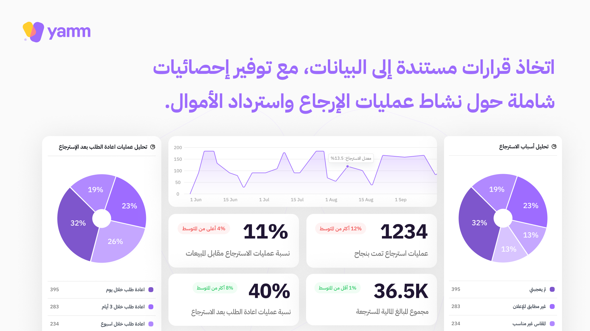 تزويدك بتقارير إحصائية حول الطلبات المسترجعة يزوّدك برؤية أوضح لأنماط السلوك الشرائي وأسباب الإرجاع لتتمكن من تحسين المنتجات أو تجربة المتجر مستقبلاً.