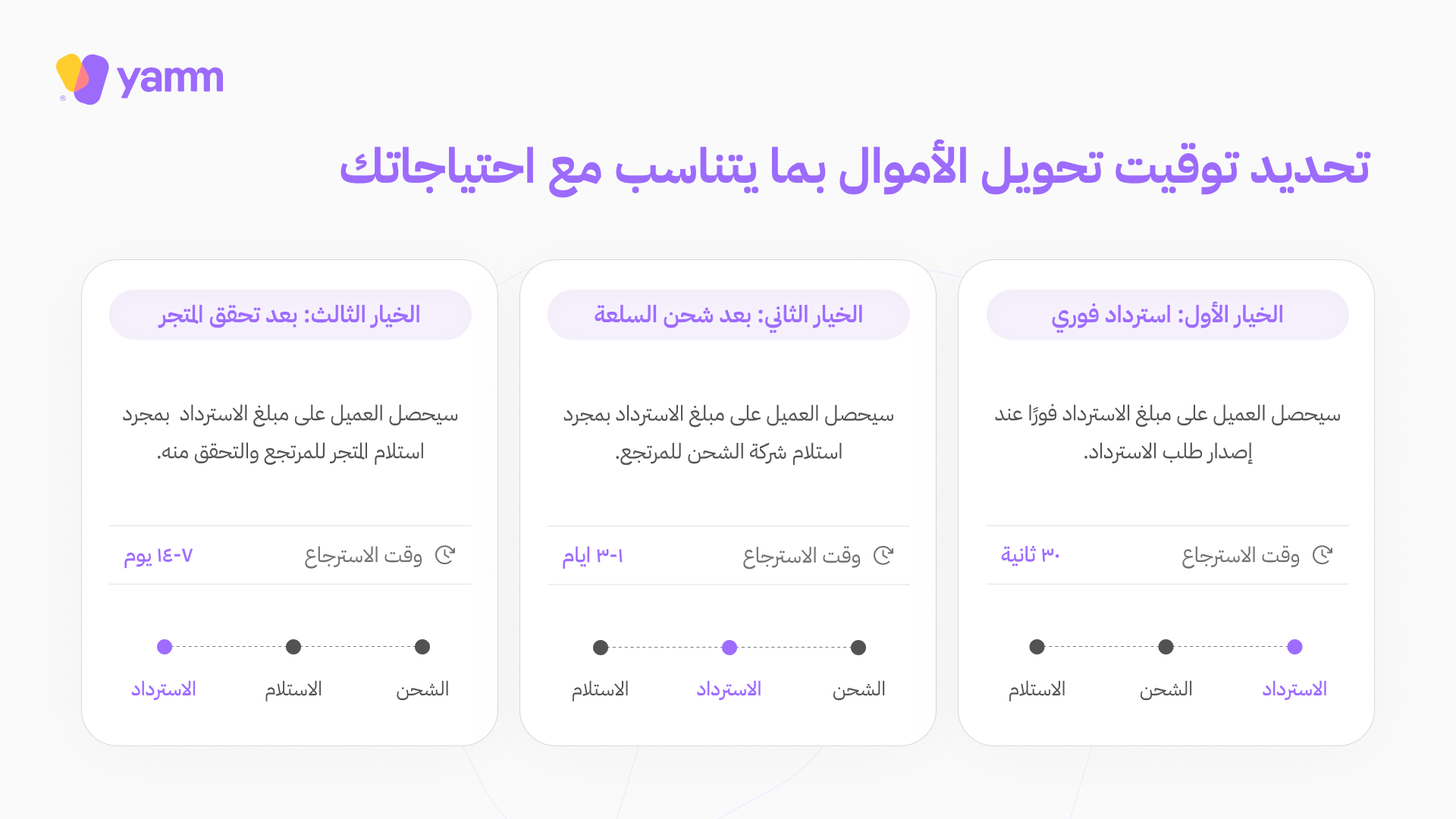 • استرداد نقدي فوري للعملاء بمجرد الموافقة على الاسترجاع، دون الحاجة لانتظار تسليم المنتج فعلياً