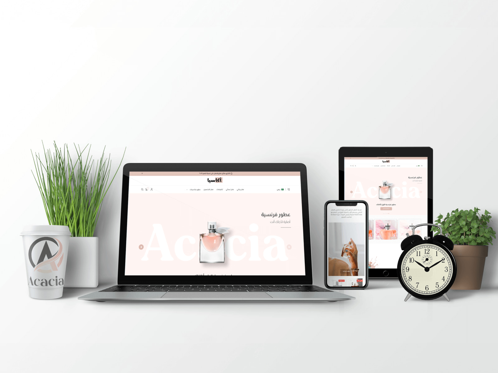 يرتكز ثيم أكاسيا على تصميم عصري يعكس هوية متاجر العطور ومستحضرات التجميل بشكل واضح، مع تفاصيل بصرية تبرز المنتجات وتجعل تصفح المتجر تجربة ممتعة وسهلة للعملاء. استخدام الصور المتحركة والبنرات العريضة يسهم في إبراز العروض والتصنيفات بفعالية، في حين تُسهّل القوائم الموسعة وعناصر التصفح المنظمة وصول المستخدم إلى ما يبحث عنه دون تعقيد.