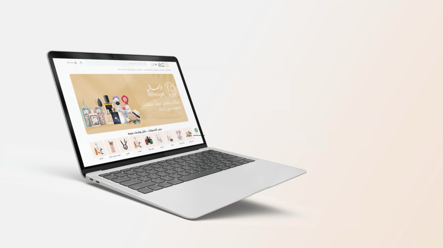 تصميم الأصايل يركز على إبراز المنتجات وجماليات العناية بالجمال من خلال قوالب مرئية واضحة وبانرات إعلانية عريضة وصور متحركة محسنة تضيف لمسة ديناميكية للتصفح. يقدم شريط المسار تجربة تنقل سهلة وفورية للعملاء، بينما تُظهر القوائم الموسعة وروابط التصنيفات المنتجات بأقسام منظمة تجعل من عملية الاستكشاف أقل تعقيدًا.