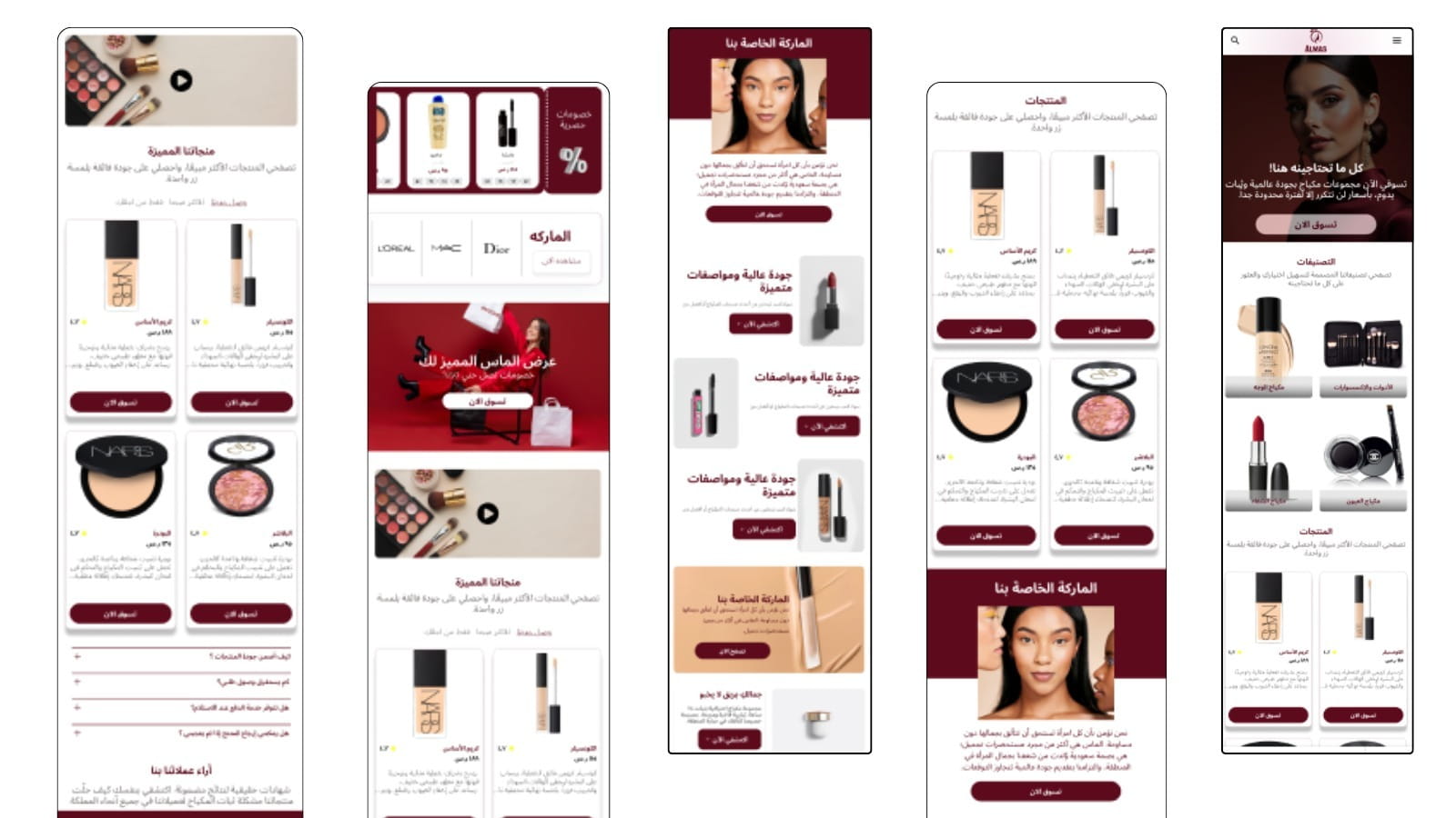 واجهة أنيقة تعرض أقسام المكياج والعروض المميزة مع إبراز المنتجات بسهولة.