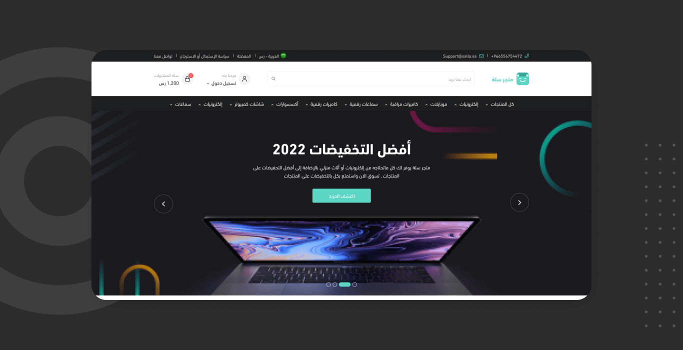 سهولة إدارة الثيم من لوحة تحكم سلة تتيح للتاجر إضافة المنتجات وتحديث العروض والتعديل على المكونات بسهولة، دون الحاجة لمعرفة متقدمة بالبرمجة أو التصميم، وهو ما يختصر الكثير من الوقت والجهد في صيانة المنصة وتطويرها باستمرار.