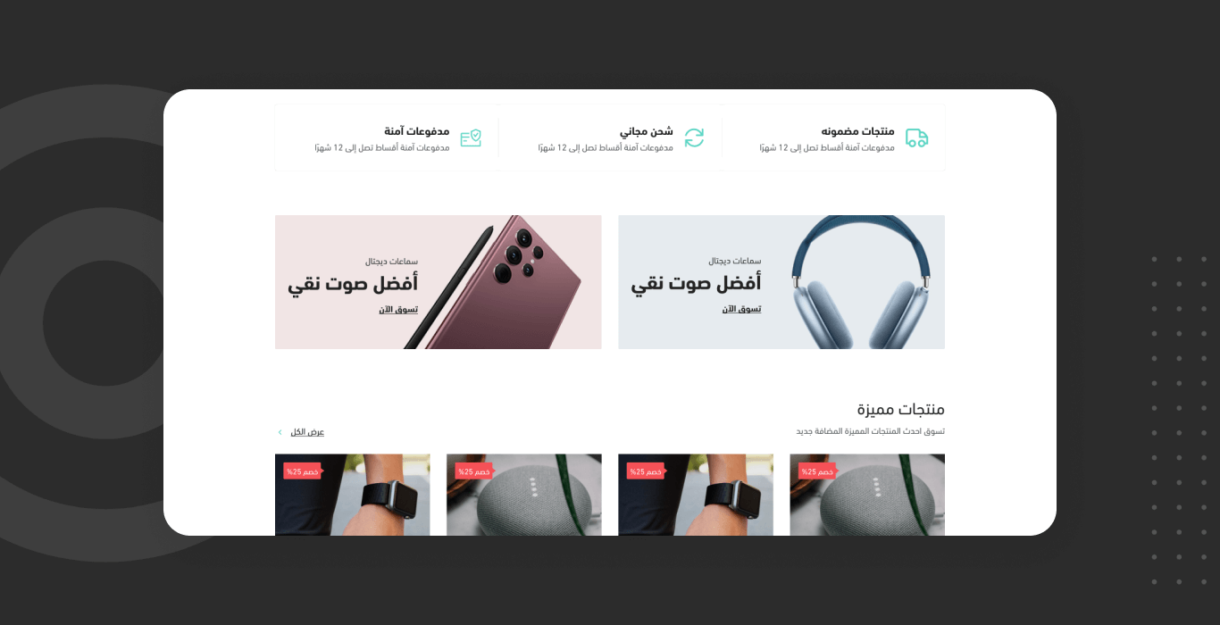 - مميزات المتجر: إبراز نقاط القوة مثل الشحن السريع أو الضمان وما إلى ذلك ضمن تصميم واضح.