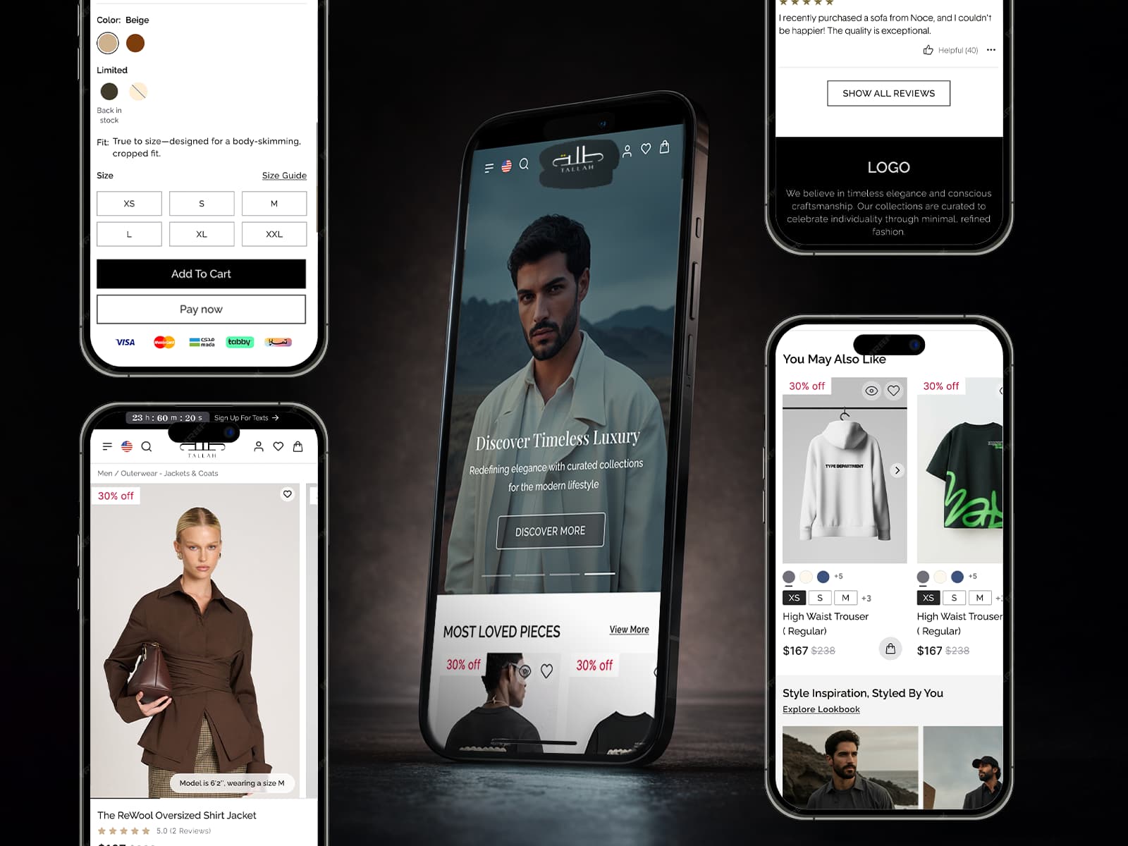 استُخدمت بانرات عريضة ورئيسية لتسليط الضوء على العروض والمنتجات الجديدة، مع الحفاظ على توحيد مقاس المنتجات لتوفير عرض متجانس واحترافي. كذلك، تضم صفحات المتجر خلفيات مخصصة وآراء عملاء، مما يدعم بناء الثقة وتعزيز الهوية البصرية للمتجر.