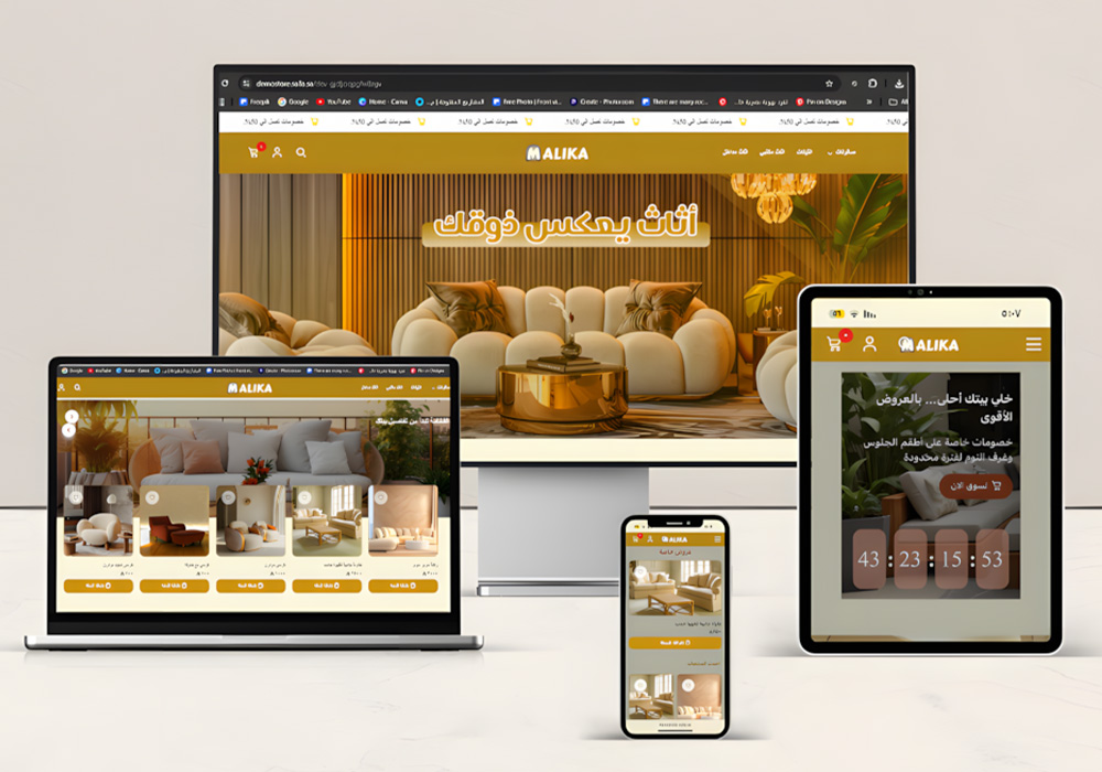 يمنح ثيم مليكة لمتجر منصة سلة واجهة عصرية تعتمد على خطوط واضحة ومساحات عرض نظيفة، مع ألوان قابلة للتخصيص لينسجم مظهر المتجر مع هوية المشروع التجاري. التصميم المتجاوب هو ركيزة أساسية هنا، إذ تتم هندسة العناصر بحيث تتكيف تلقائيًا مع الأجهزة المحمولة والألواح الإلكترونية والشاشات المكتبية دون المساس بوضوح العروض أو ترتيب المنتجات.