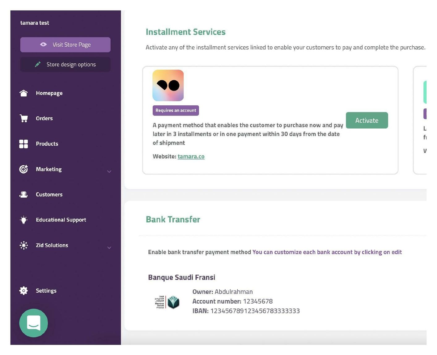 كذلك، إذا كنت تبحث عن وسيلة سهلة لدمج حلول مالية متطورة دون الحاجة لأي إعدادات تقنية معقدة، فإن تمارا يقدم الإجابة من خلال ربط بسيط وواجهة واضحة تناسب احتياجات مختلف أنواع المتاجر على منصة زد.