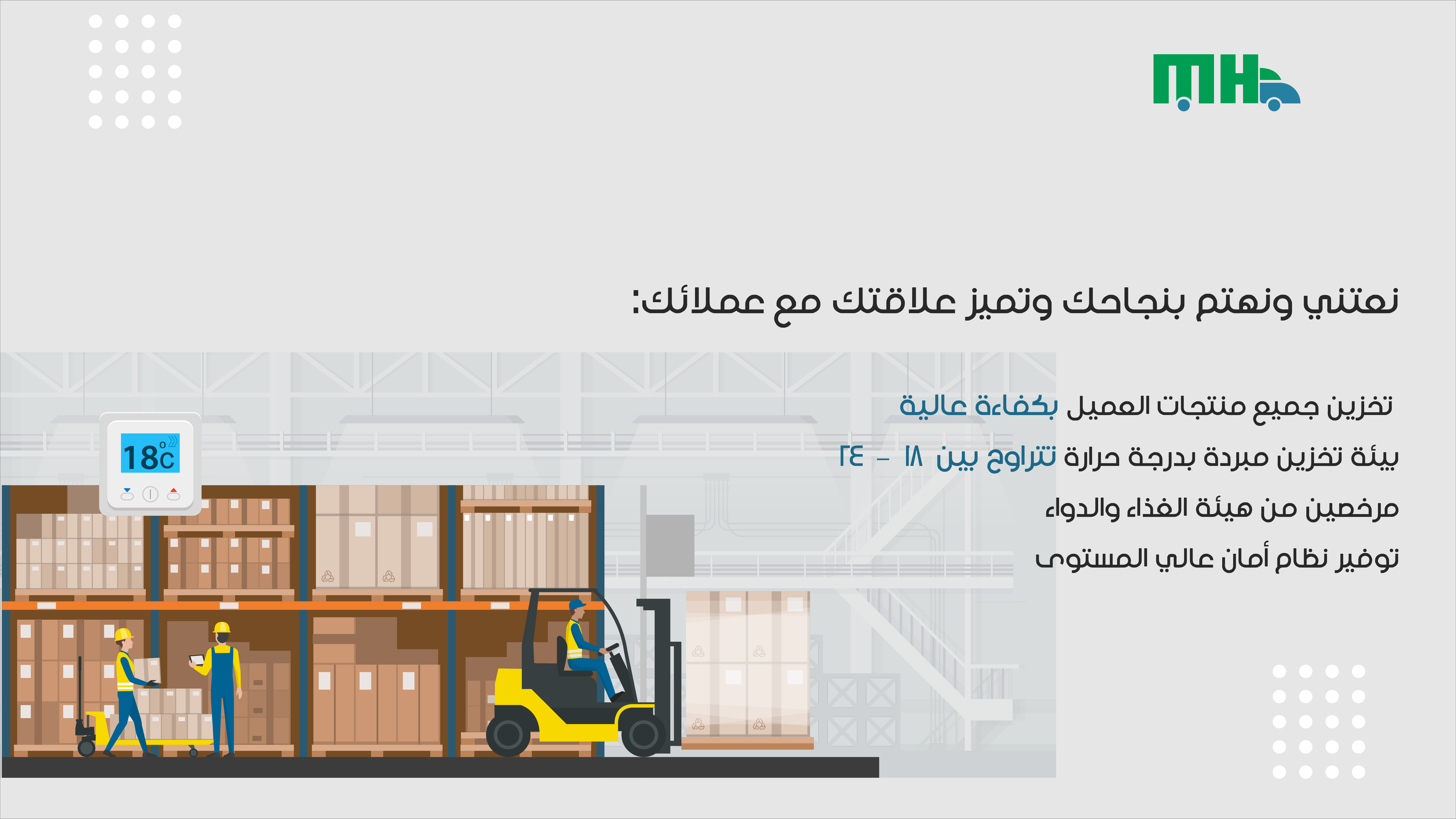 - تخزين المنتجات في مستودعات مبردة مرخصة ومطابقة لمعايير هيئة الغذاء والدواء