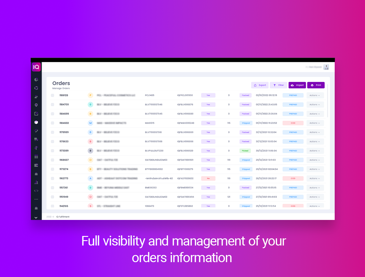 يعتمد “اي كيو فولفيلمنت” على حلول روبوتية متطورة ومنصة برامج متكاملة لإدارة عمليات الشحن والتخزين. يقوم التطبيق بالاندماج مع عمليات متجرك بشكل تلقائي ليصبح جزءًا من سير عملك اليومي دون الحاجة لتغيير الإجراءات الداخلية.