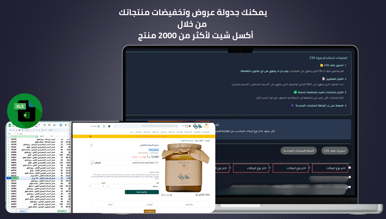 - تنفيذ تعديلات واسعة على مئات أو آلاف المنتجات دفعة واحدة عبر استيراد بيانات Excel
