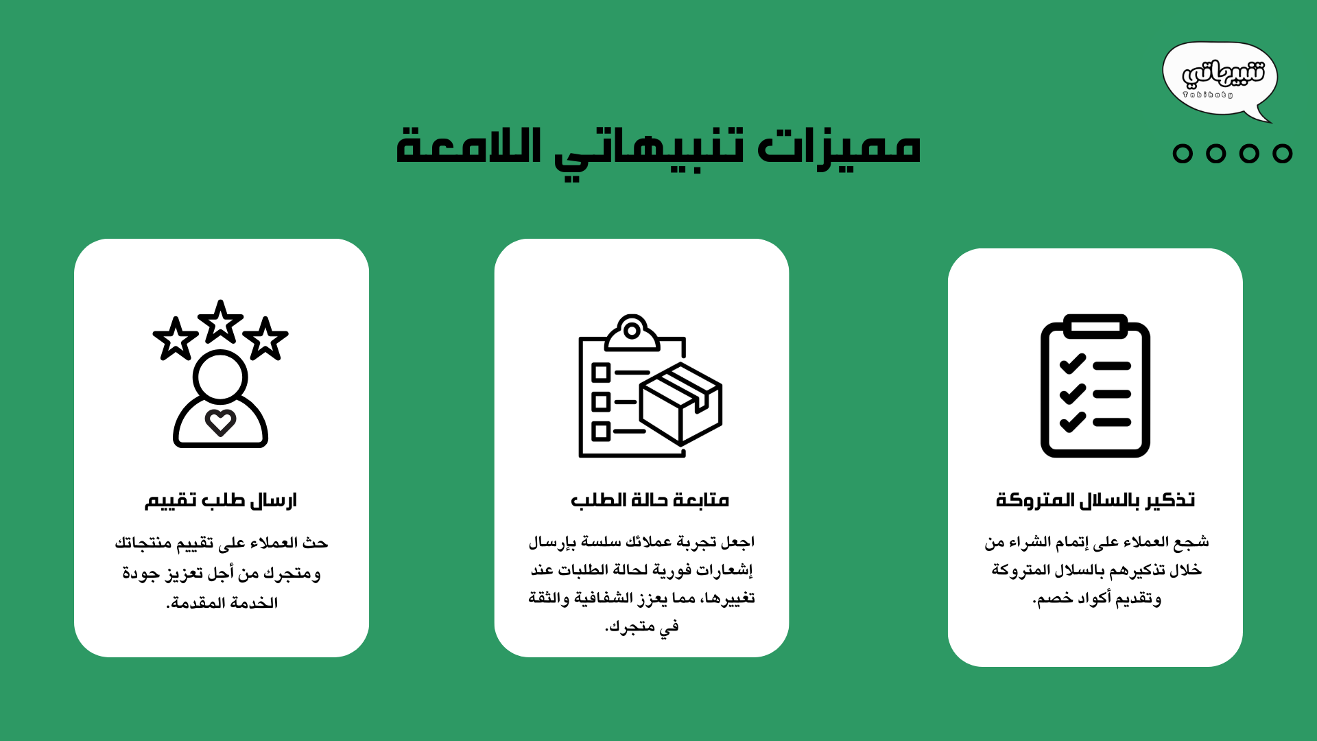 • تنبيهات تلقائية عند أي تغييرات في الطلبات أو لاستطلاع آراء العملاء دون الحاجة للتدخل اليدوي