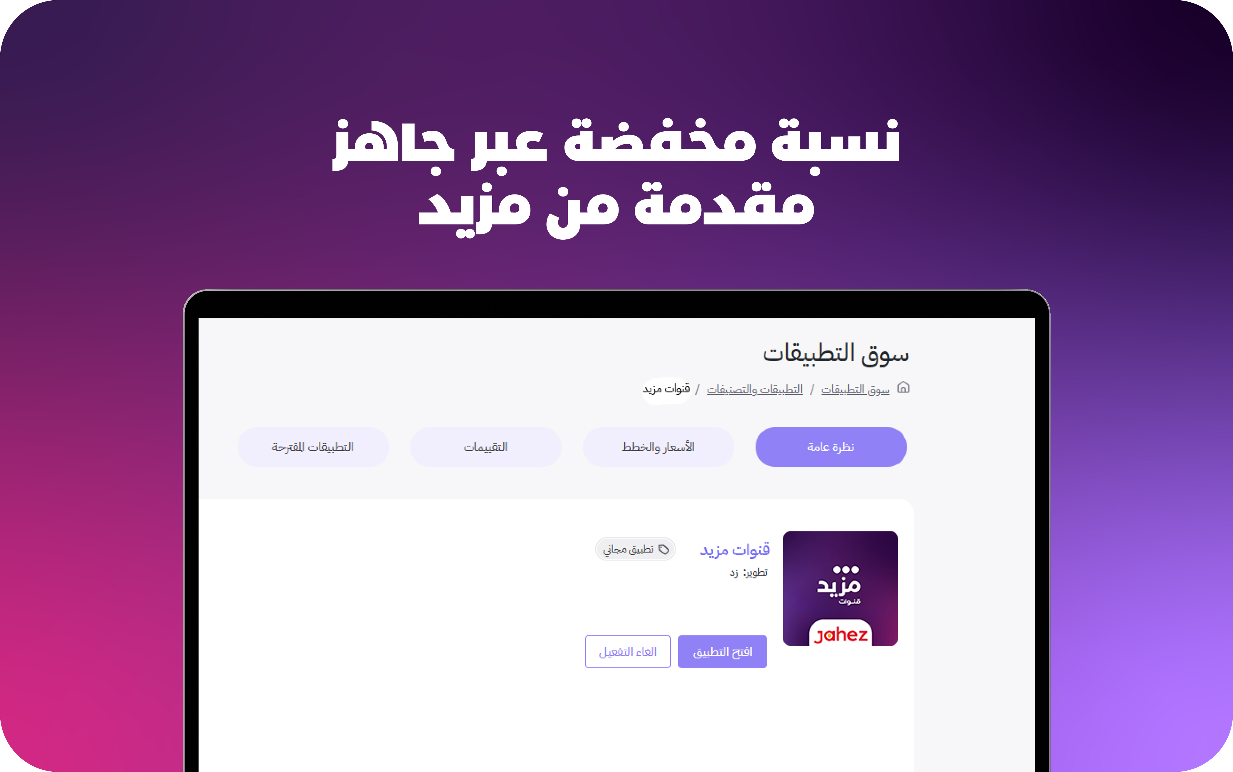 يمثل التطبيق قناة بيع إضافية، مما يعني أن بإمكانك الاستفادة من قاعدة مستخدمي جاهز الضخمة دون الحاجة لإدارة مخزونات أو صفحات خارجية جديدة. كل ذلك يتم من خلال أدوات متجرك الرئيسية، فتتاح لك إمكانيات تسويقية وتوزيعية أكبر برسوم تنافسية يقدمها لك “مزيد”.