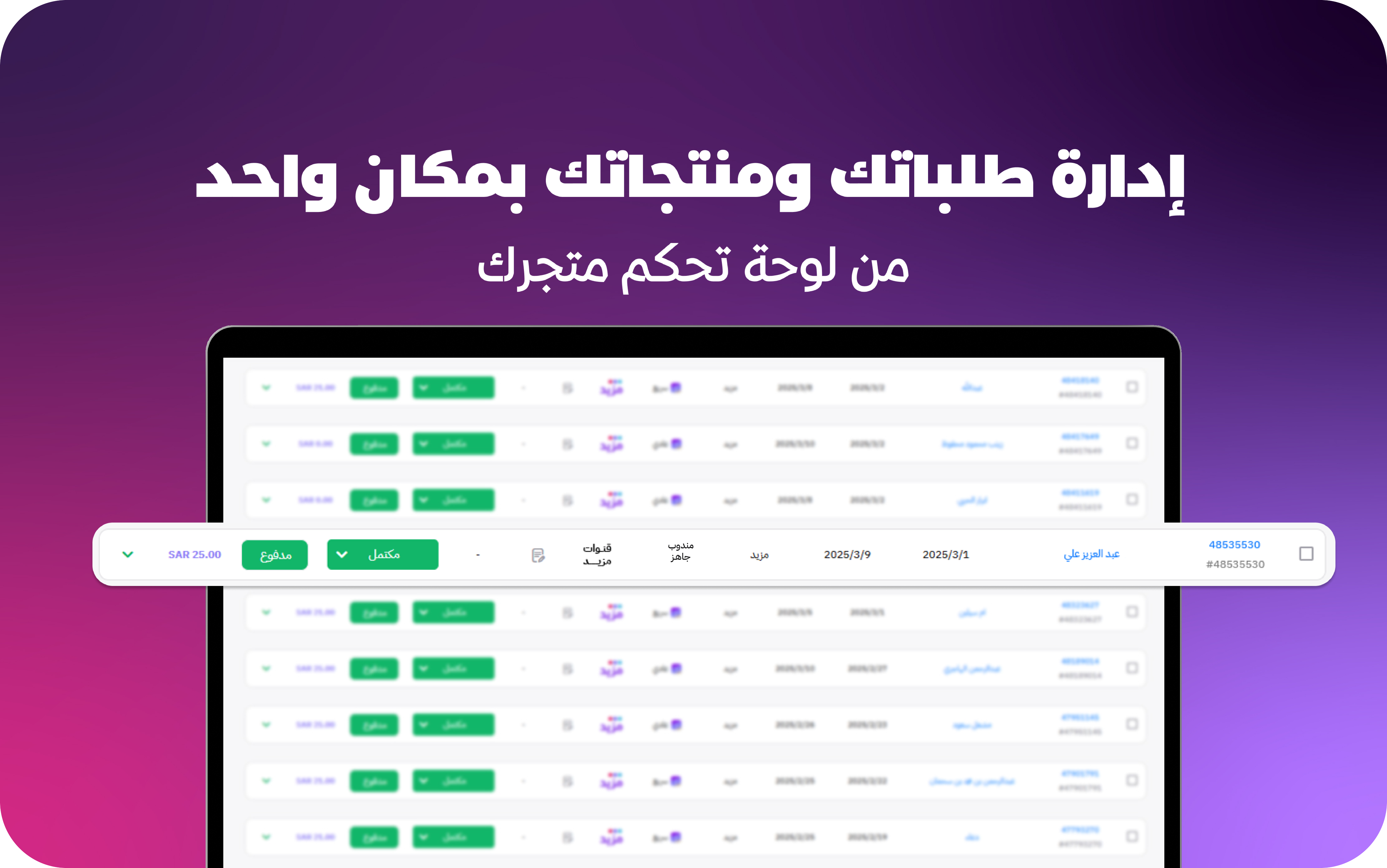 - تكامل الطلبات والشحن بشكل تلقائي مع لوحة تحكم متجرك