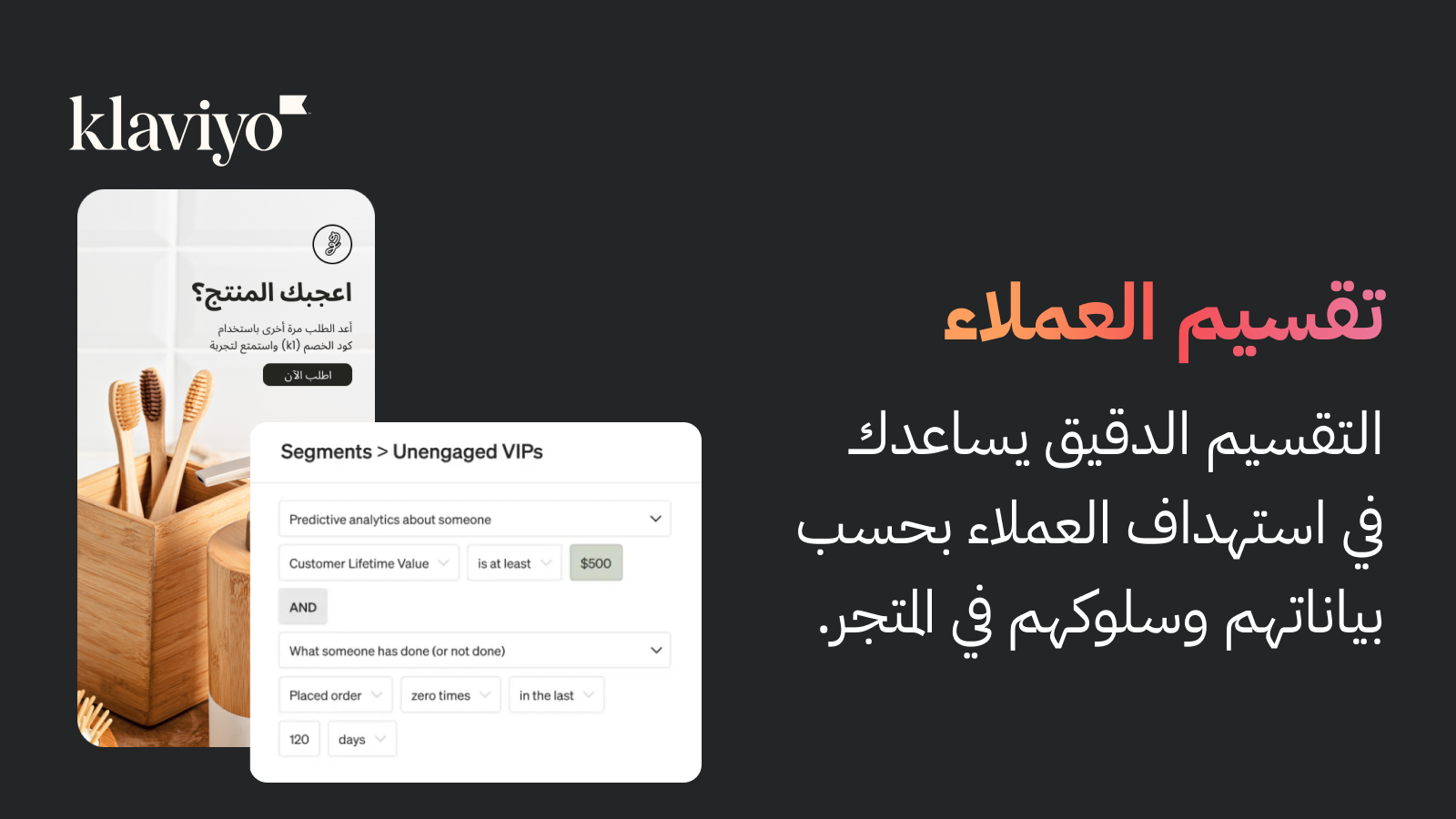 يعتمد تخصيص الرسائل والحملات التسويقية بشكل كامل على إمكانيات منصة كلافيو، حيث تتم مزامنة جميع البيانات والسلوكيات المهمة من متجرك في زد، ويمكنك استخدام هذه المعطيات لبناء قوالب رسائل متقدمة وشبه شخصية لكل فئة من العملاء.