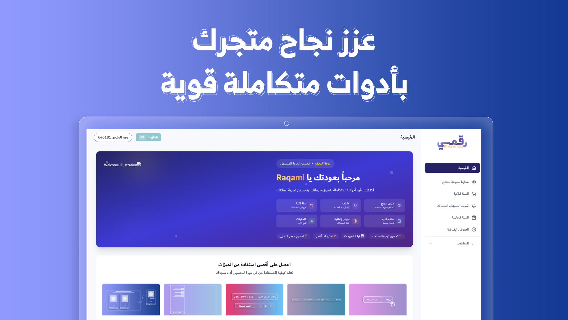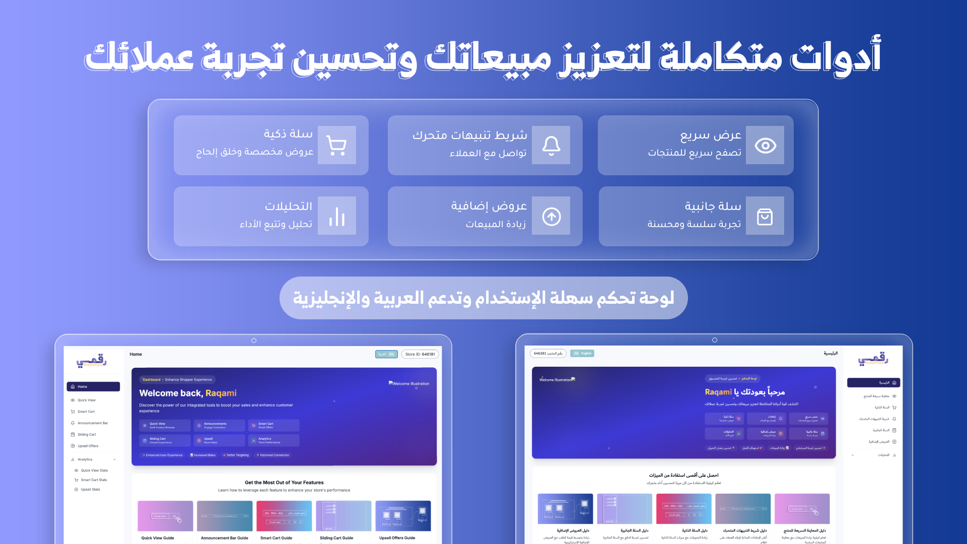 كل ميزة تعتمد على الاندماج السلس مع واجهة المتجر، دون الحاجة لأي تغييرات تقنية معقدة من قبل التاجر. عمليات إضافة، تعديل أو تفعيل الأدوات تتم عبر لوحة تحكم التطبيق بمجرد بضع نقرات.