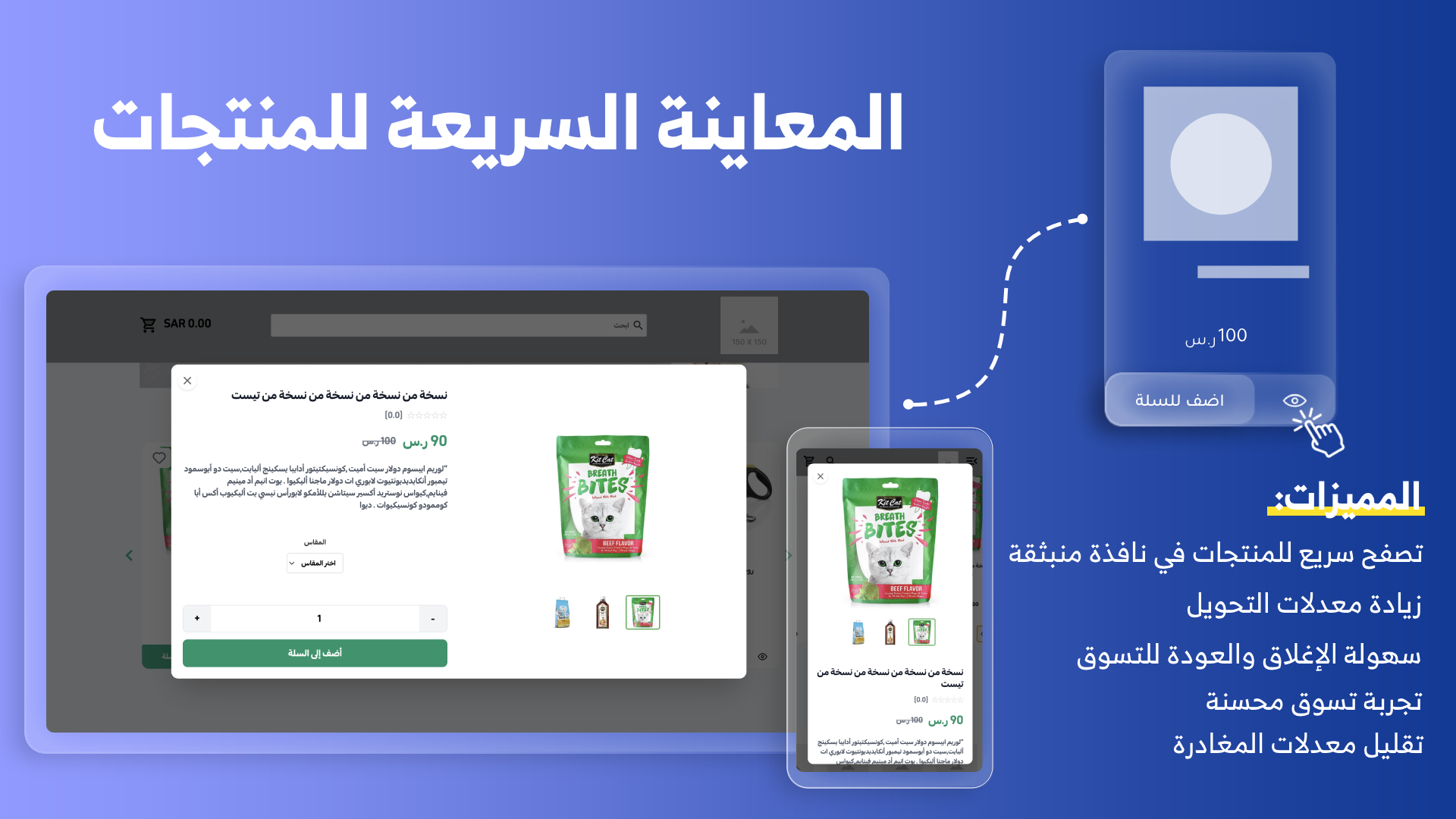 - العرض السريع للمنتج: يتيح للعملاء الاطلاع على تفاصيل المنتج دون الخروج من صفحة التصفح، مما يسرّع اتخاذ قرار الشراء.