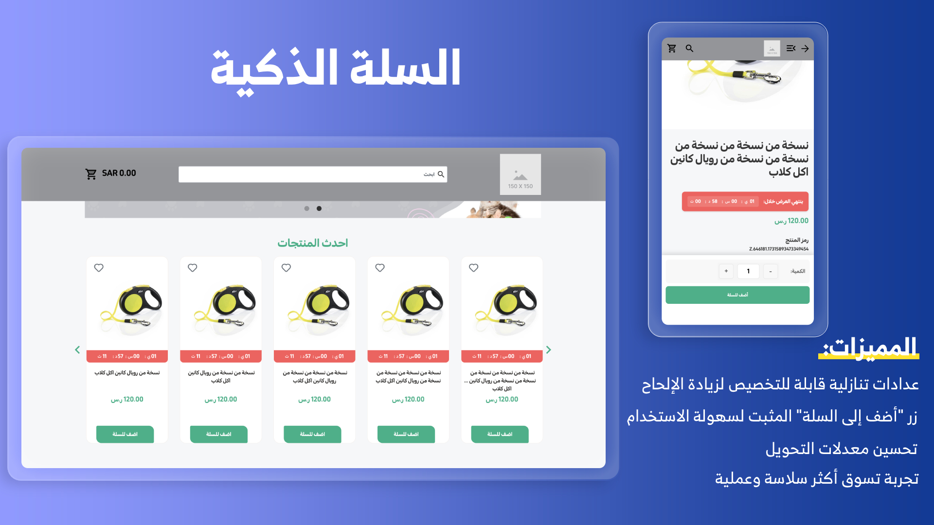 - السلة الذكية مع عدّ تنازلي: إضافة مؤقت تفاعلي يحفز العميل على سرعة الشراء خلال العروض أو الفعاليات المحدودة الوقت، مع زر “إضافة إلى السلة” الثابت.