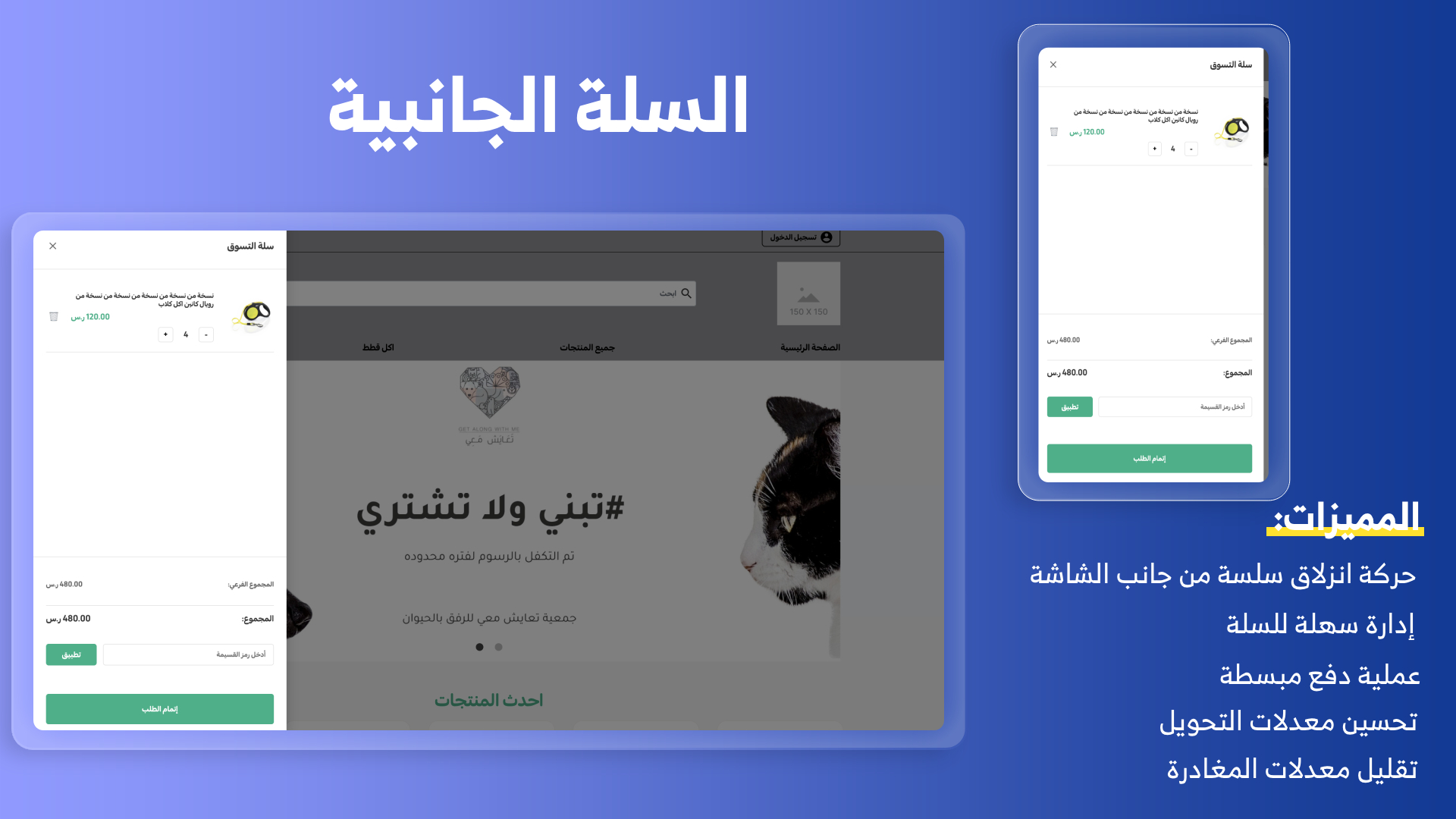 - السلة الجانبية: تسهّل للمشتري مراجعة وتعديل السلة فوراً دون الحاجة للخروج أو إعادة تحميل الصفحات.