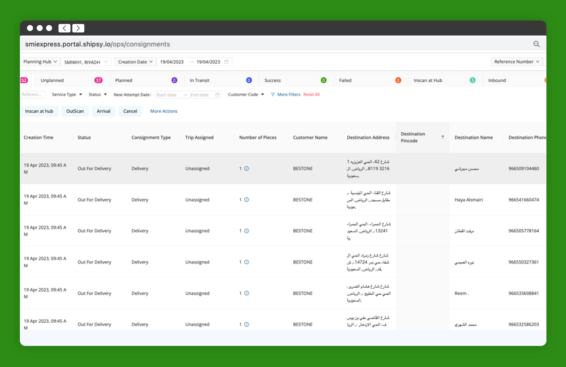يوفر التطبيق متابعة تلقائية لجميع الشحنات المرسلة، ما يساعد التاجر في التحكم في عمليات التسليم وتقديم مستوى أعلى من الجودة في خدمة العملاء من خلال الإبلاغ بتحديثات الشحن والتوصيل لحظياً.