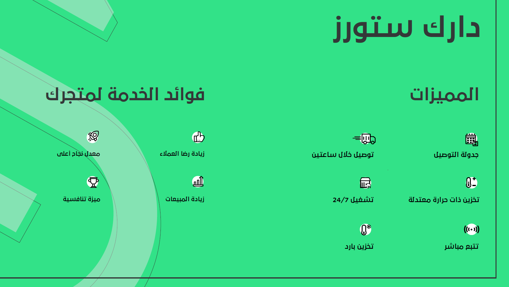- تخزين البضائع في مستودعات متخصصة تابعة للدارك ستور مما يقلل الأعباء اللوجستية على التاجر