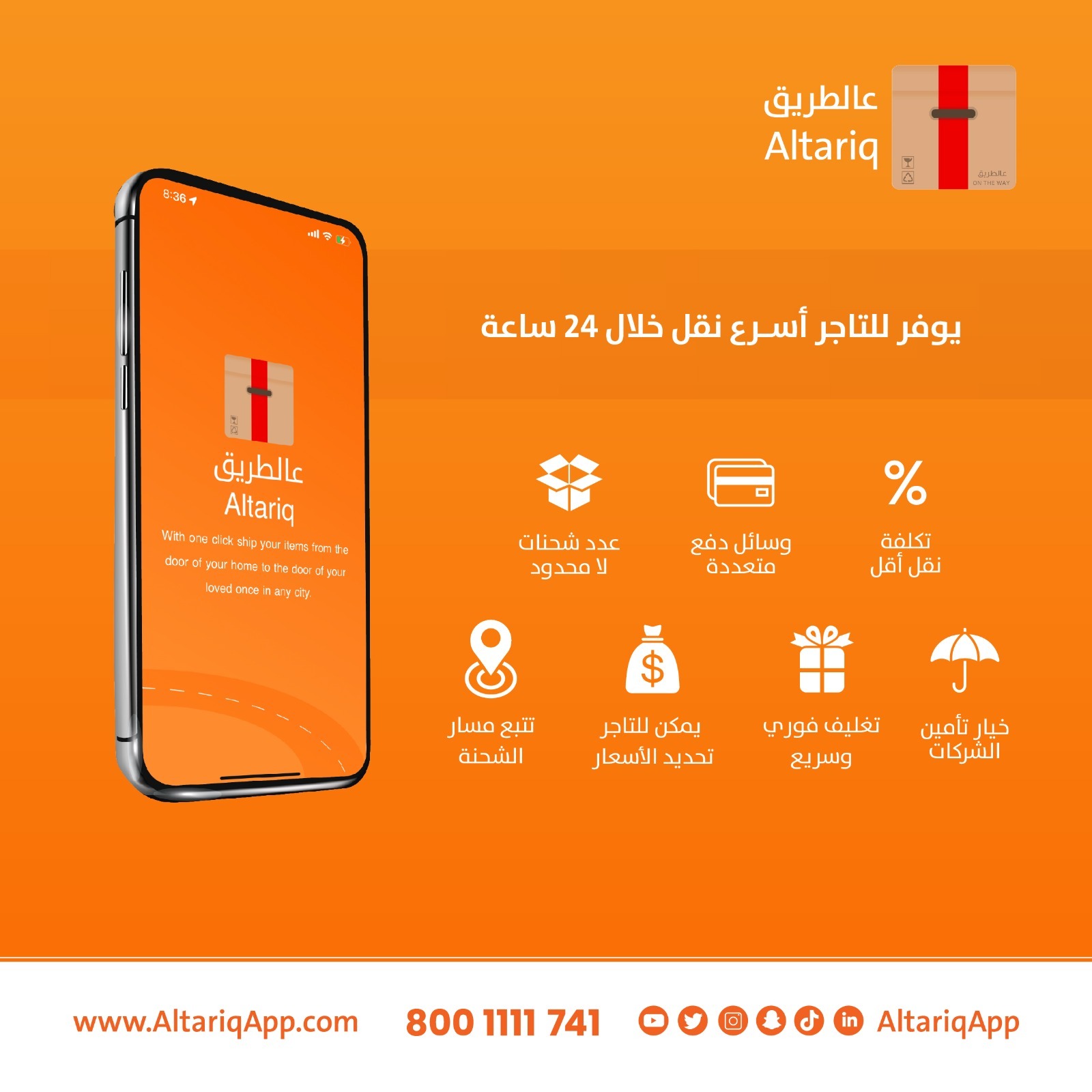 يعتمد تطبيق “عالطريق” على ربط المتجر مع شبكة نقل نشطة تغطي جميع أنحاء المملكة، حيث يتم تنسيق استلام الشحنات من موقع المتجر أو مستودعه وشحنها إلى عنوان العميل مباشرة، سواء داخل نفس المدينة أو بين المدن المختلفة.