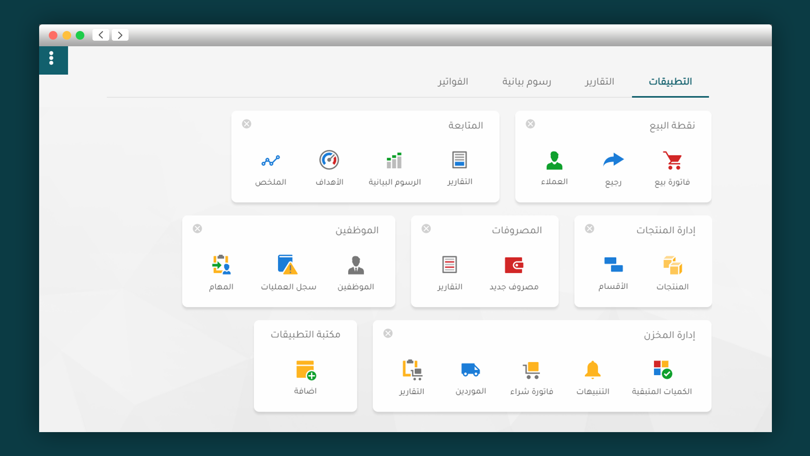 تتولى أنظمة نقاط البيع التابعة للتطبيق عمليات المحاسبة وخدمة العملاء في الفروع، مع دعم شامل للأجهزة الطرفية مثل قارئ الباركود وطابعات الإيصالات. كما يمنحك التطبيق إمكانية الاطلاع على مجموعة واسعة من التقارير المالية والإدارية بضغطة زر واحدة عبر أي جهاز متصل بالإنترنت.