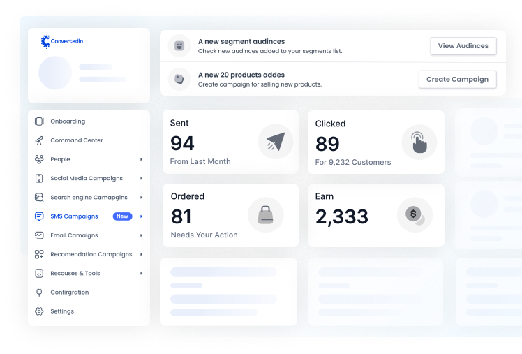 - إدارة حملات الرسائل القصيرة والبريد الإلكتروني بسهولة وتصميم يتناسب مع توجهات المتجر