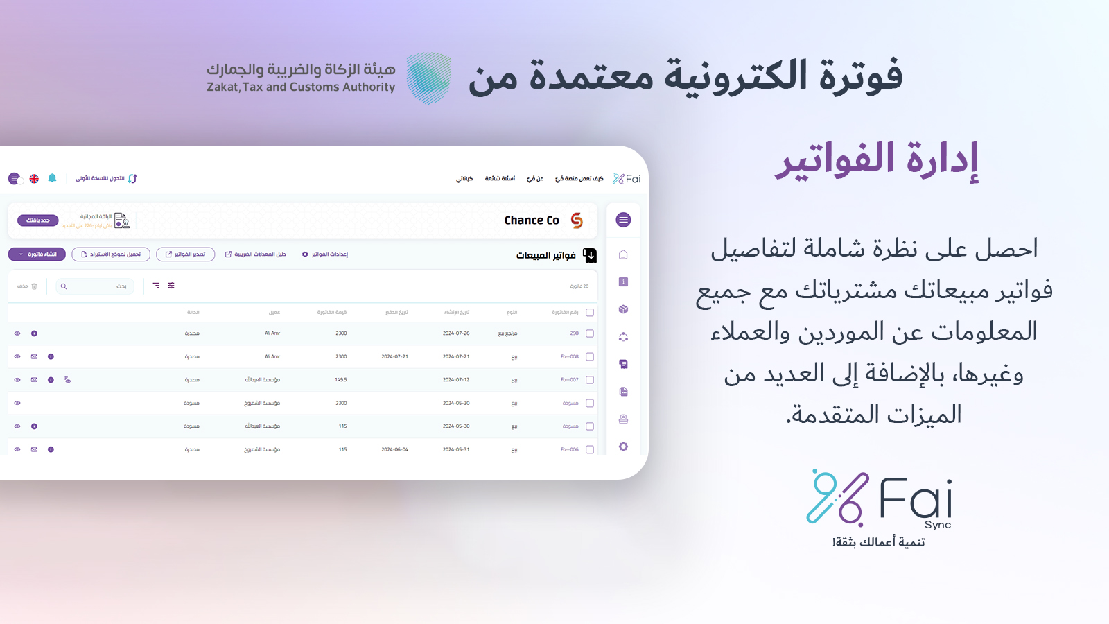 • فوترة إلكترونية معتمدة بالكامل من هيئة الزكاة والضريبة والجمارك وتغطي المرحلتين الأولى والثانية