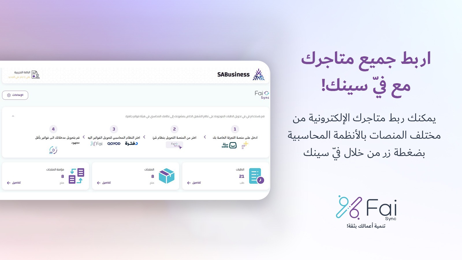 يعتمد “نظام في” على الاتصال السحابي لمزامنة بيانات متجرك في زد مع نظام المحاسبة الخاص بك بشكل تلقائي. بعد تفعيل الربط بين متجرك على زد والتطبيق، يتم ترحيل جميع بيانات المبيعات والفواتير بشكل متواصل دون الحاجة لأي تدخل يدوي. يكون كل ما على المستخدم هو تفعيل التطبيق، اختيار الباقة، ومن ثم الموافقة على الصلاحيات للبدء مباشرة.