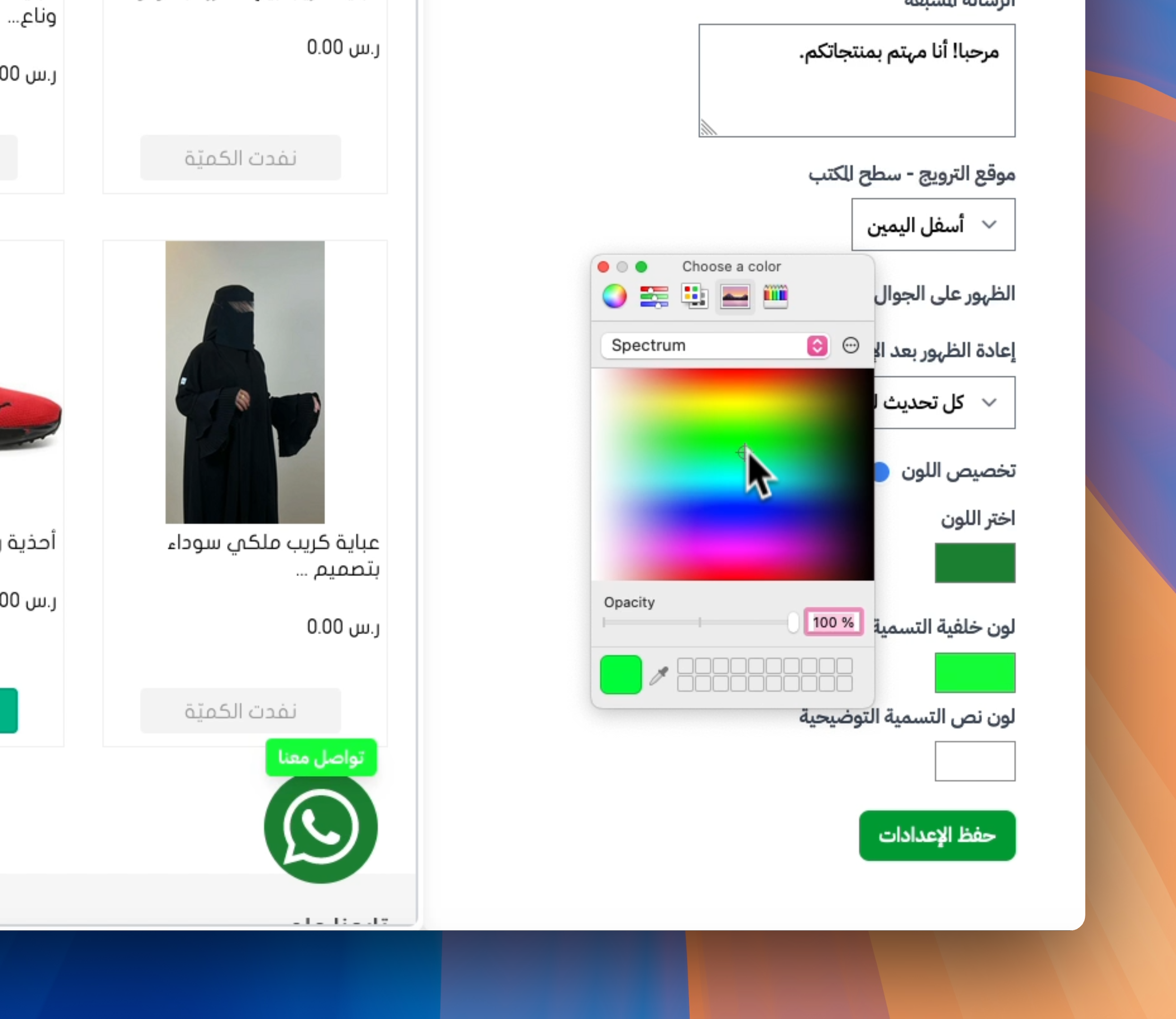 - إمكانية معاينة شكل الزر على جميع الشاشات (الهاتف واللابتوب) قبل النشر، لضمان تناسقه مع التصميم العام للمتجر.